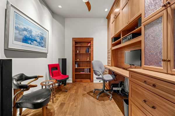 A defining feature of the library—the family’s flourishing book collection—is organized using the Dewey Decimal System alongside other personalized methods. Its ever-expanding shelves, filled with cherished novels and memories, tell the beautifully evolving story of Chris, Ellen and their two young daughters.