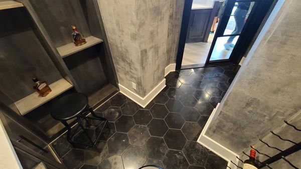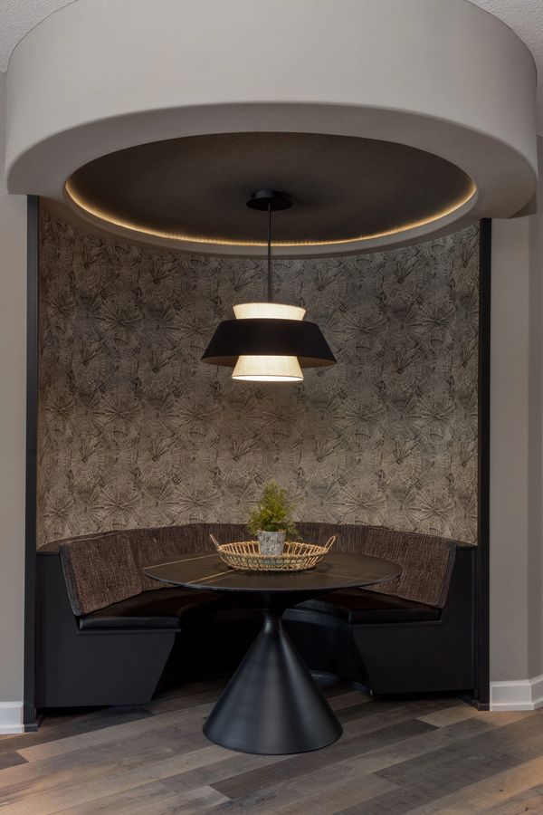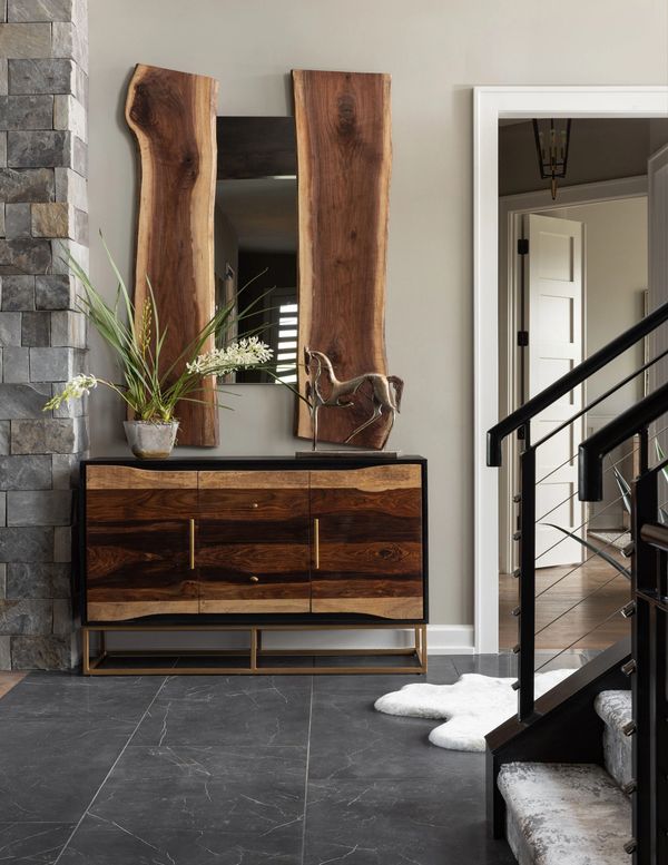 From that point, the couple partnered with B.L. Rieke’s interior designer Beth Weir, working together on everything from interior trim work and exterior paint colors to seamlessly incorporating the family’s cherished trinkets into the home’s mix of moody, modern and nostalgic aesthetics.